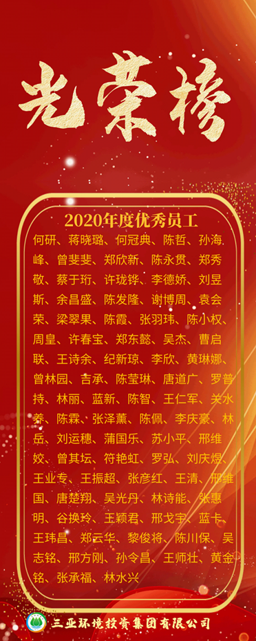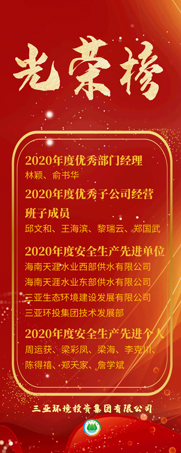 公司取得的優(yōu)異成績,離不開我們?nèi)w環(huán)投人的共同努力,是我們?nèi)旧舷氯翰呷毫?,勠力同心,奮楫篤行的成果。在我們環(huán)投人的隊伍中,涌現(xiàn)出了一大批管理科學、敢于創(chuàng)新的先進集體和盡職盡責、勇于奉獻的先進分子。為了鼓勵先進,樹立典型,激發(fā)全體職工干部的奮斗熱情,公司決定對2020年度涌現(xiàn)出的先進集體和先進個人予以嘉獎!