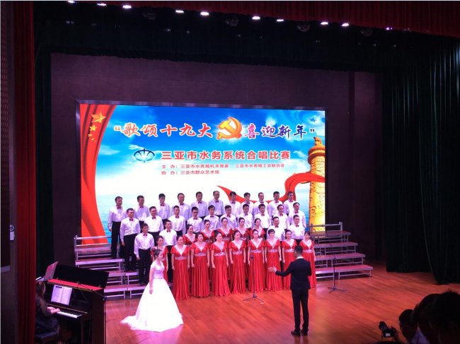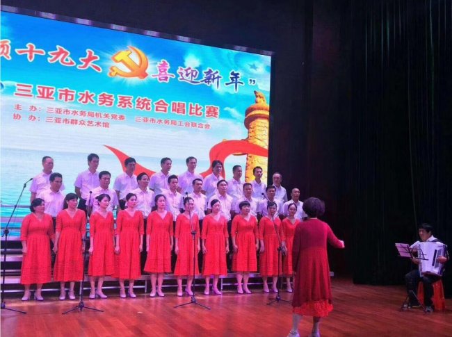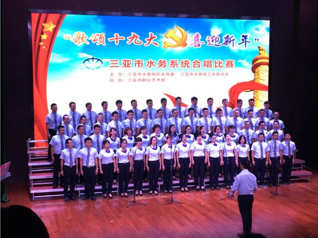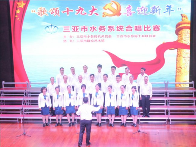 20171227日,我司參加了在市群藝館舉辦的三亞市水務(wù)系統(tǒng)“歌頌十九大 喜迎新年”合唱比賽。經(jīng)過激烈角逐和專家評(píng)分,我司合唱團(tuán)演唱的歌曲《祖國不會(huì)忘記》和《在燦爛的陽光下》以積極向上的精神風(fēng)貌和富有極強(qiáng)感染力的藝術(shù)效果奪得桂冠。