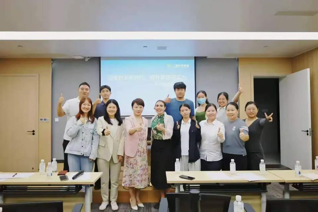 在互動練習(xí)環(huán)節(jié),同事們兩人一組結(jié)對,運用剛剛學(xué)到的詞匯和句式進行對話演練,隨后各組依次上臺展示。大家沉浸式投入角色,大膽表達(dá)交流。外教現(xiàn)場糾正發(fā)音誤區(qū)和表達(dá)不當(dāng)之處,提出優(yōu)化建議,幫助大家精準(zhǔn)提升語言應(yīng)用能力?,F(xiàn)場互動氛圍熱烈,每一次精彩演示都贏得陣陣掌聲。
