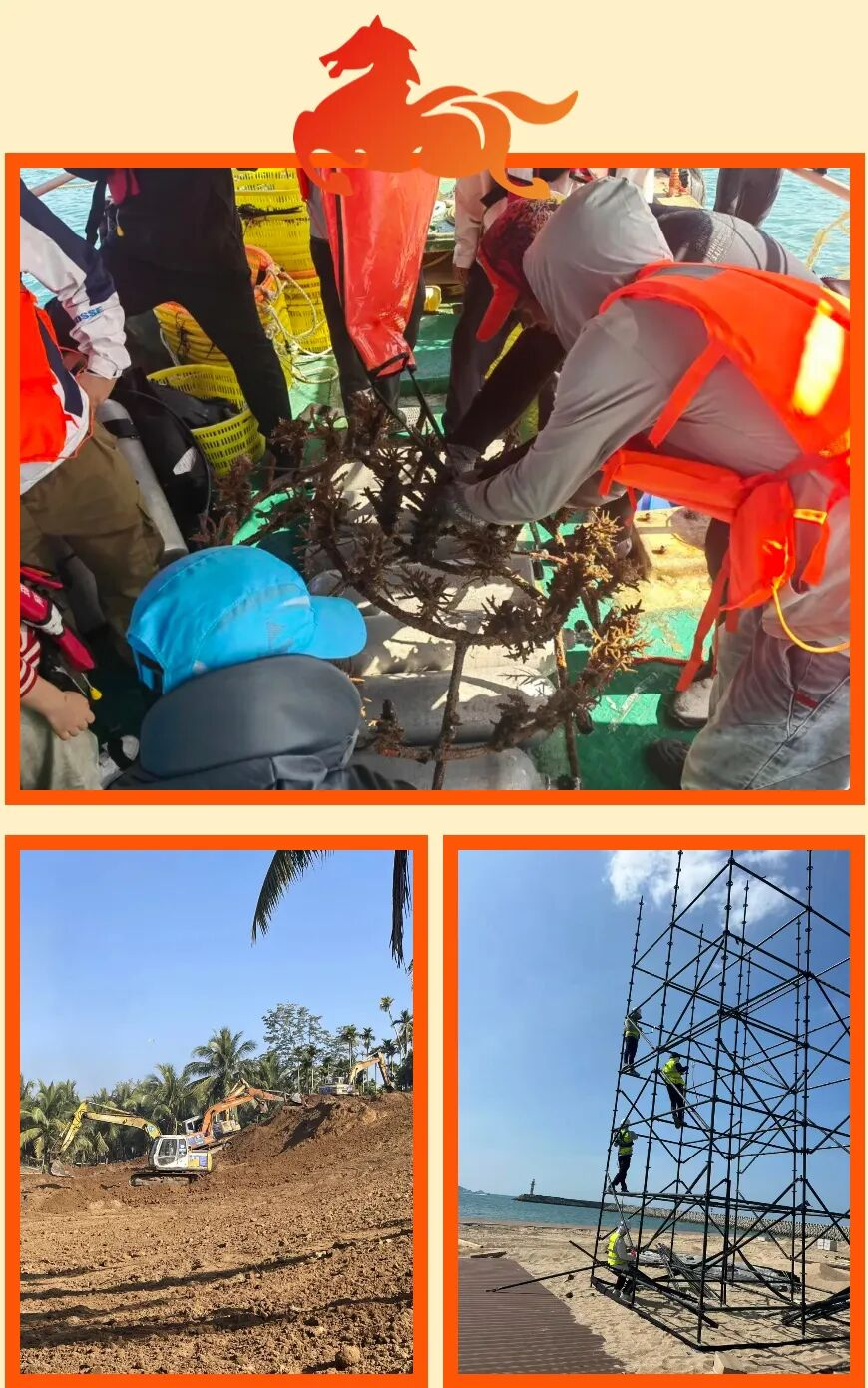 環(huán)通公司承建的亞沙會(huì)設(shè)施建設(shè)等重點(diǎn)項(xiàng)目假期不曾停工,施工現(xiàn)場(chǎng)機(jī)器轟鳴、人員干勁十足,呈現(xiàn)出一派熱火朝天的景象。三亞灣近岸珊瑚礁生態(tài)系統(tǒng)修復(fù)項(xiàng)目搶抓天氣窗口期推進(jìn)珊瑚礁移植;第六屆亞洲沙灘運(yùn)動(dòng)會(huì)設(shè)施建設(shè)項(xiàng)目的場(chǎng)館主體建設(shè)、電力保障子項(xiàng)目同步發(fā)力,為賽事舉辦保駕護(hù)航;三亞市藤橋河流域生態(tài)修復(fù)工程全面展開(kāi)河道整治、生態(tài)修復(fù)作業(yè),打造生態(tài)廊道。新一年,公司將錨定目標(biāo)、加壓奮進(jìn),以?xún)?yōu)質(zhì)工程助力三亞城市建設(shè)與生態(tài)環(huán)境保護(hù)。